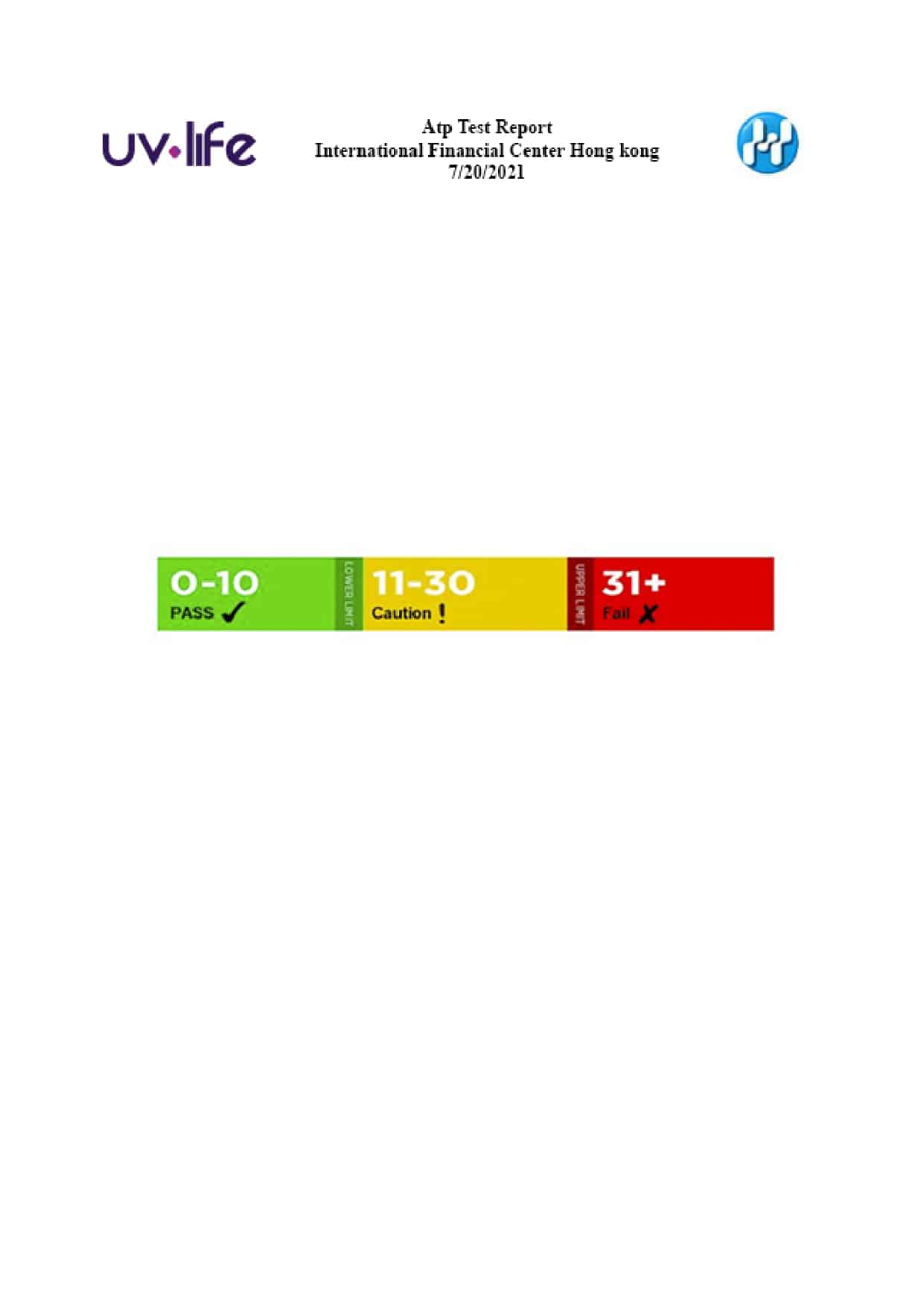 La siguiente prueba se realizó en el International Financial Center de Honk Kong. Se midió el nivel de carga microbiana antes y después de utilizar uv-life